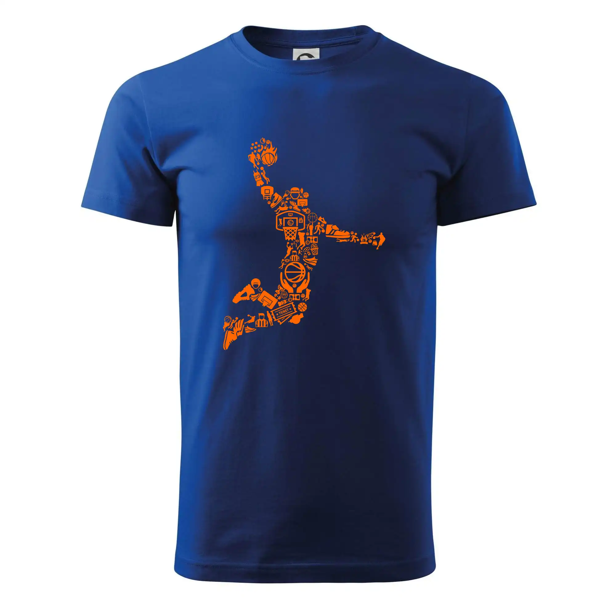Triko s basketbalovým hráčem vytvořeným z typických basketbalových ikon, které jsou typické pro tuto míčovou hru. Perfektní dárek pro basketbalistu, basketbalista na triku.