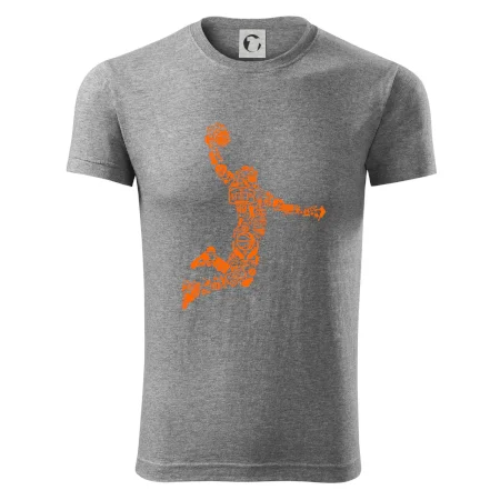 Triko s basketbalovým hráčem vytvořeným z typických basketbalových ikon, které jsou typické pro tuto míčovou hru. Perfektní dárek pro basketbalistu, basketbalista na triku.