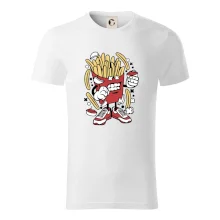 Pánské tričko s krátkým rukávem vyšší gramáže. Módní, přiléhavý střih s bočními švy. Úzký lem průkrčníku ze žebrového úpletu s přídavkem 5 % elastanu. Vnitřní část zadního průkrčníku začištěna páskou. Zpevněný ramenní šev.