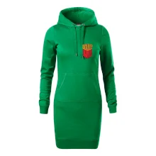 Dámské mikinové šaty MALFINI Snap 419 jsou ideální volbou pro ženy, které hledají pohodlný a stylový kousek pro volný čas nebo každodenní nošení. Lehce vypasovaný střih s bočními švy podtrhuje ženskou siluetu, zatímco kapuce s podšívkou a stahovací šňůrkou dodává ležérní vzhled.