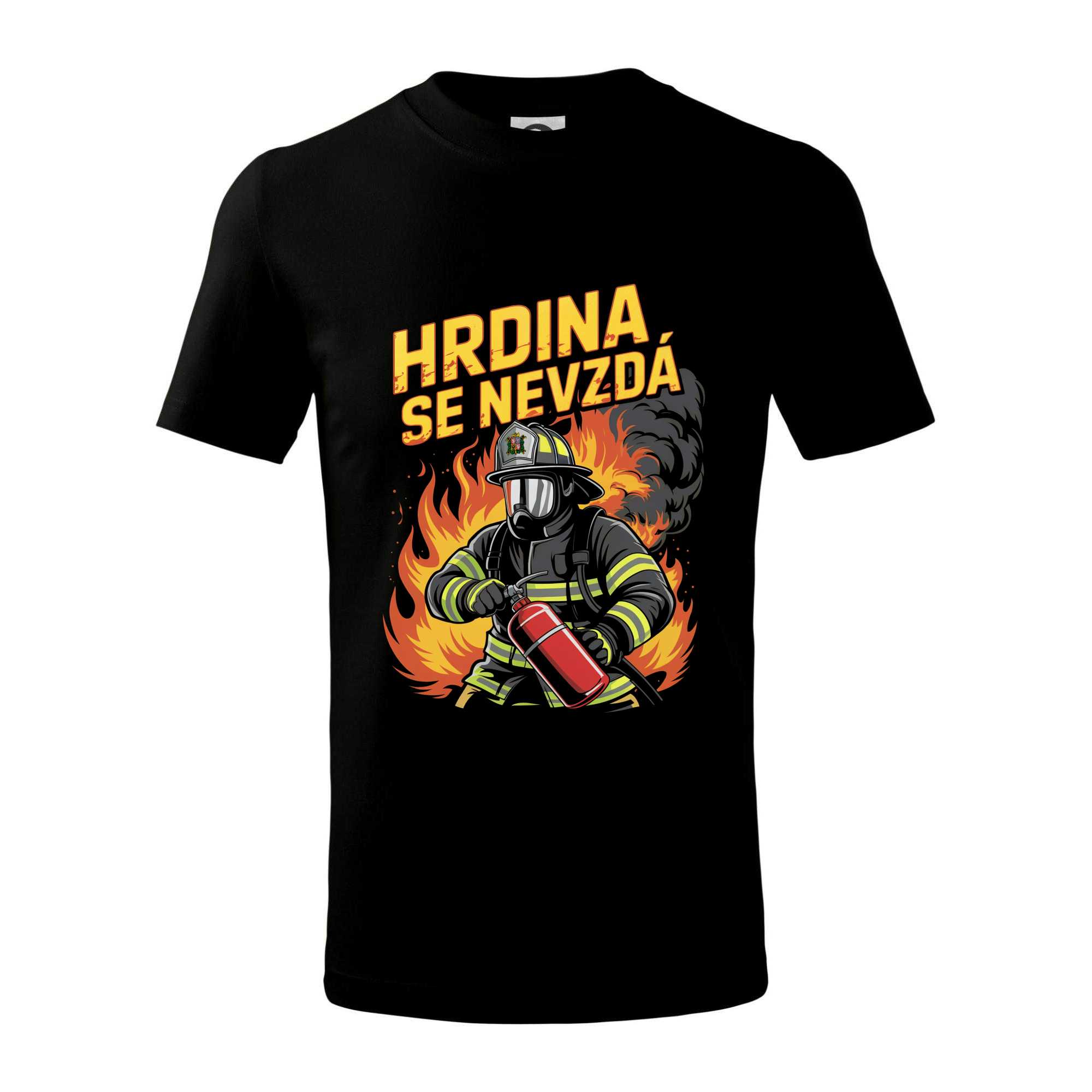 Hrdina se nevzdá - nápis s hasičem