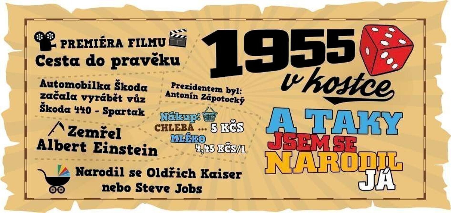 V naší nabídce najdete tento potisk 1955 v kostce pro muže i na tričko.