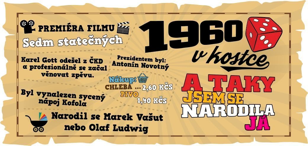 V naší nabídce najdete tento potisk 1960 v kostce pro ženy i na tričko.
