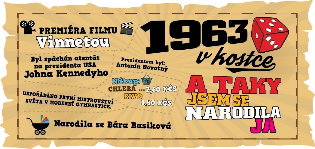 V naší nabídce najdete tento potisk 1963 v kostce pro ženy i na tričko.