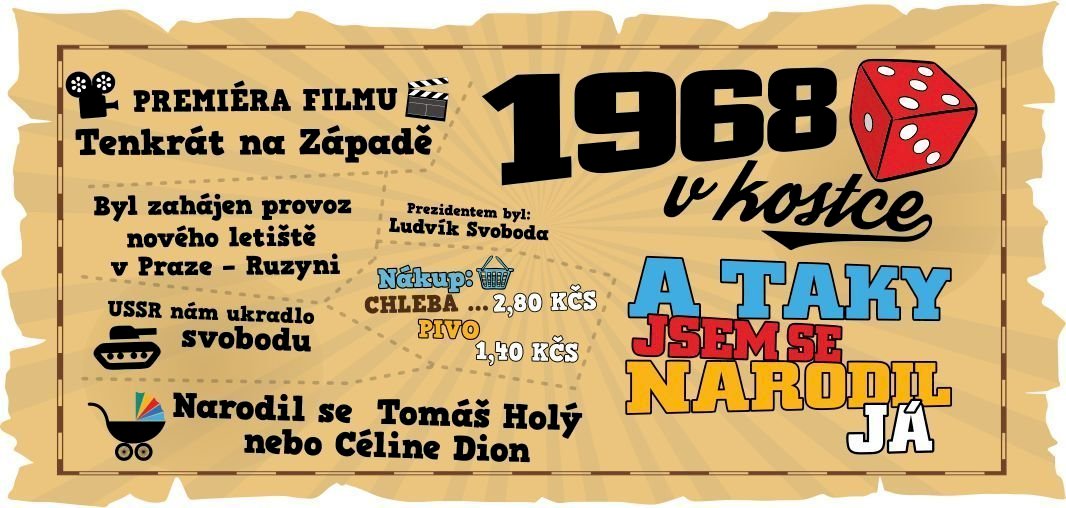 V naší nabídce najdete tento potisk 1968 v kostce pro muže i na tričko.