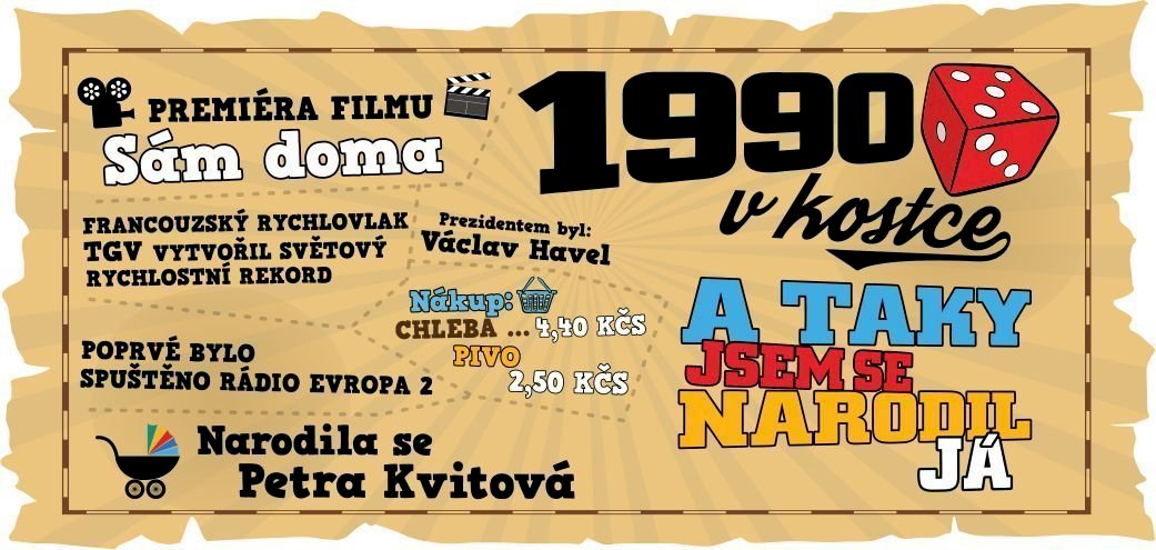 V naší nabídce najdete tento potisk 1990 v kostce pro muže i na tričko.
