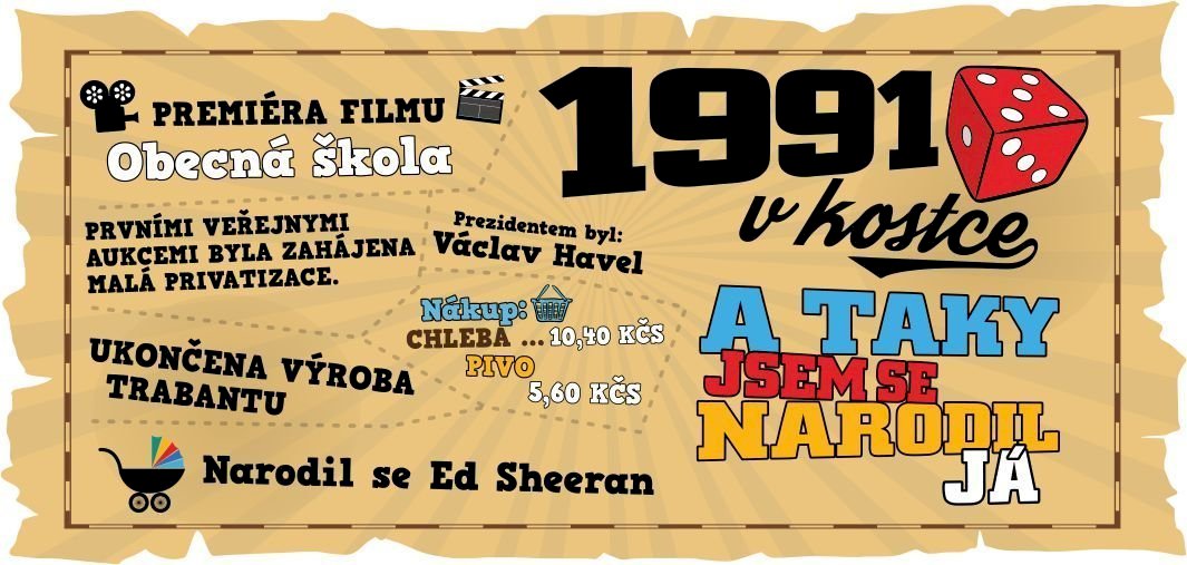 V naší nabídce najdete tento potisk 1991 v kostce pro muže i na tričko.