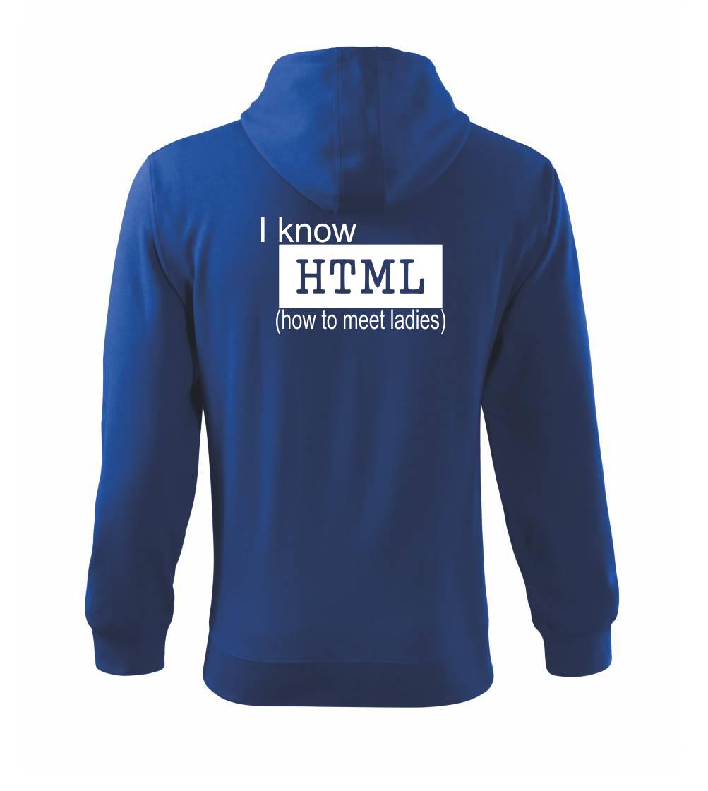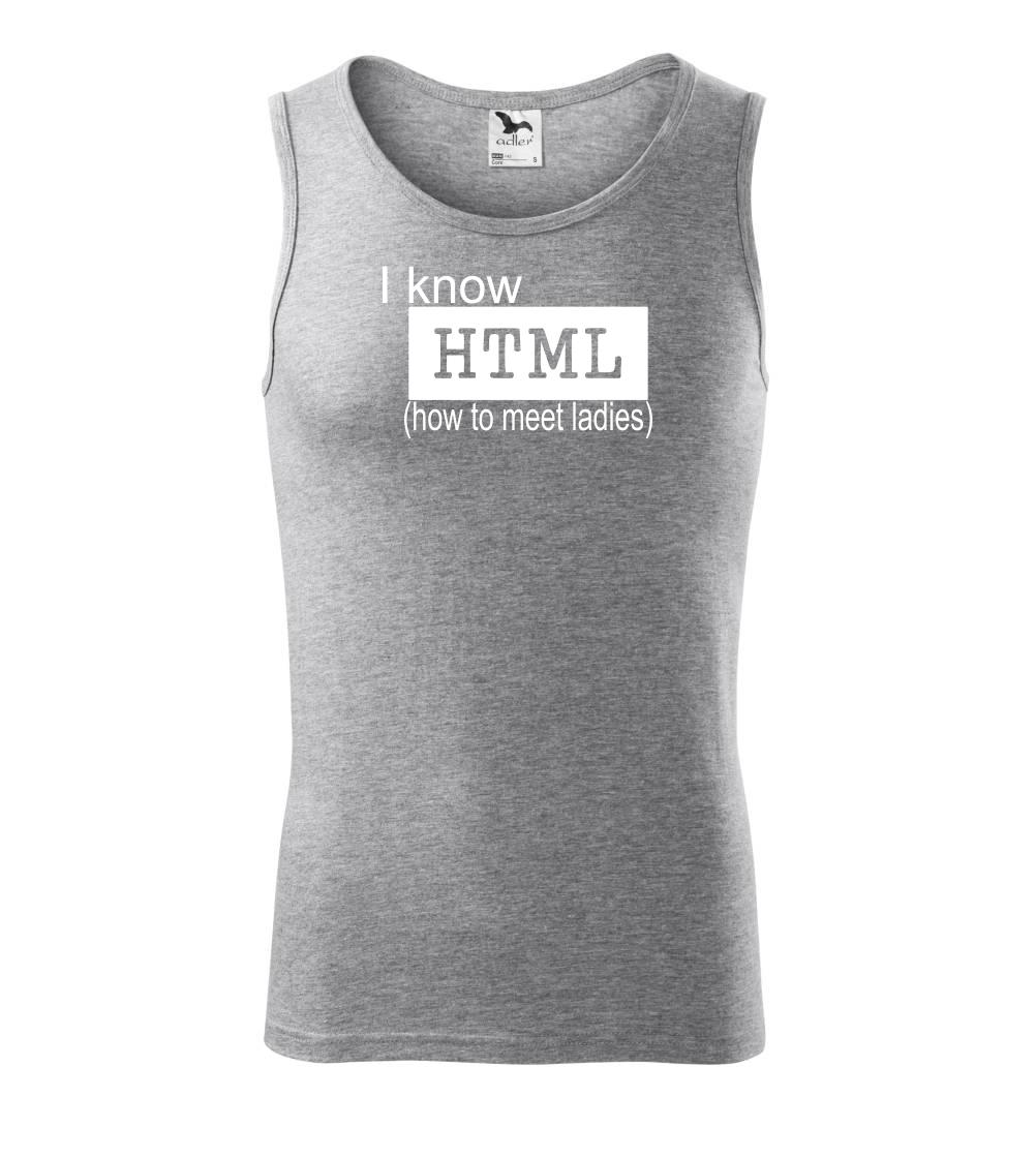 Tričko s potiskem "I know HTML" pro programátora webových stránek je skvělým dárkem pro kamaráda či kamarádku. Mrkni na další programátorská trika, geek trika nebo trička s periodickou tabulkou.