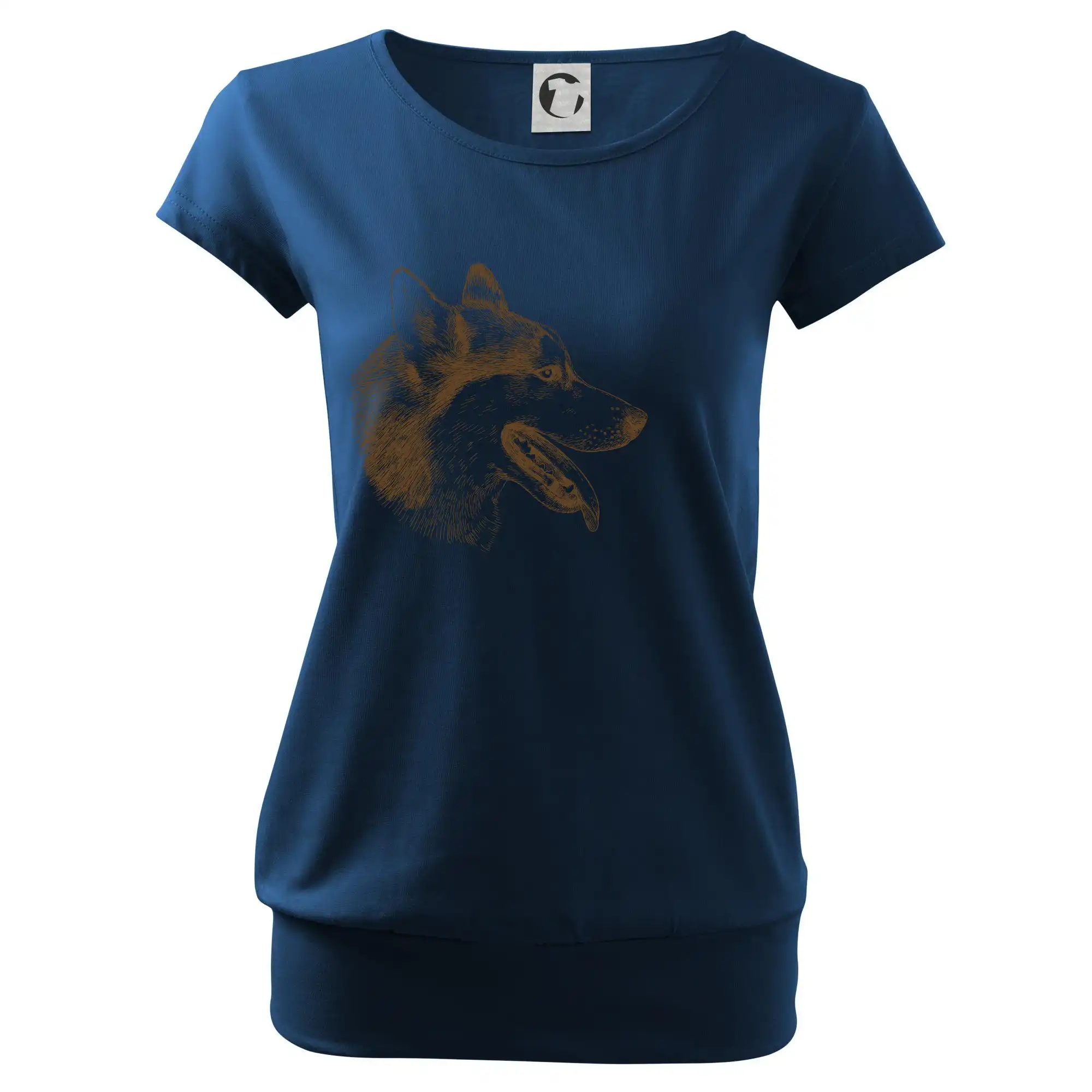 Trendové dámské triko s velmi krátkým rukávem, volnějšího střihu, v dolním kraji všité do širokého lemu. Kulatý průkrčník s úzkým lemem ze shodného materiálu.