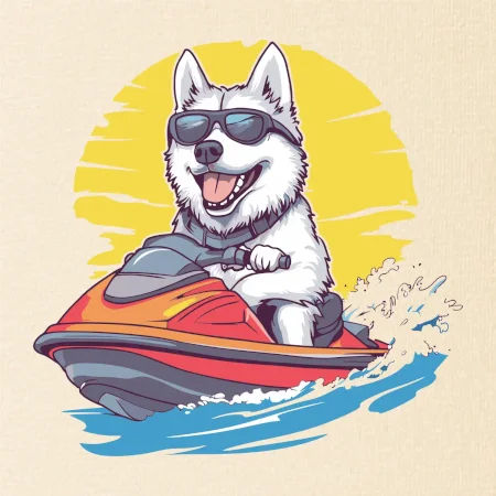 Husky na vodním skútru