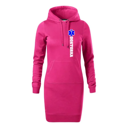 Dámské mikinové šaty MALFINI Snap 419 jsou ideální volbou pro ženy, které hledají pohodlný a stylový kousek pro volný čas nebo každodenní nošení. Lehce vypasovaný střih s bočními švy podtrhuje ženskou siluetu, zatímco kapuce s podšívkou a stahovací šňůrkou dodává ležérní vzhled.