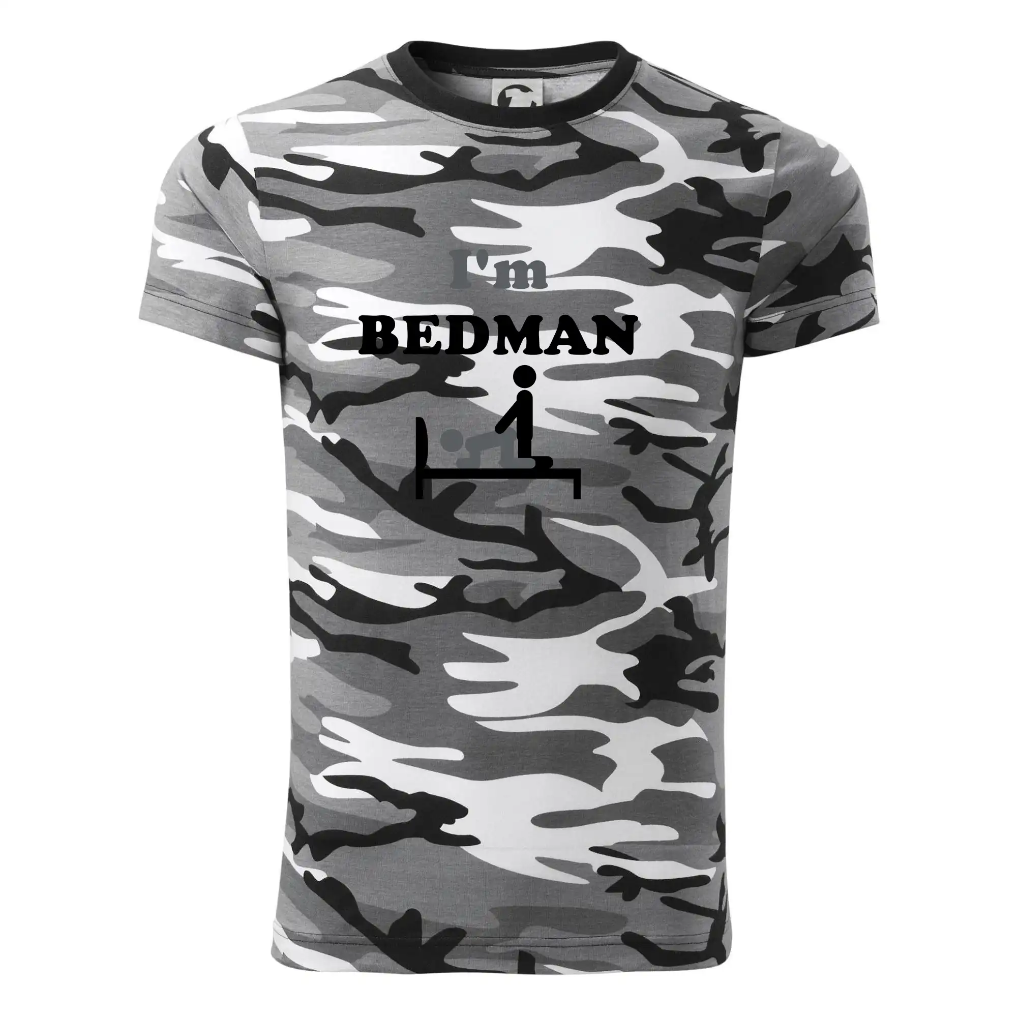 Tričko střední gramáže v barvách camouflage. Střih s bočními švy. Lem průkrčníku ze žebrového úpletu s přídavkem 5 % elastanu. Vnitřní část zadního průkrčníku začištěna páskou v barvě camouflage.