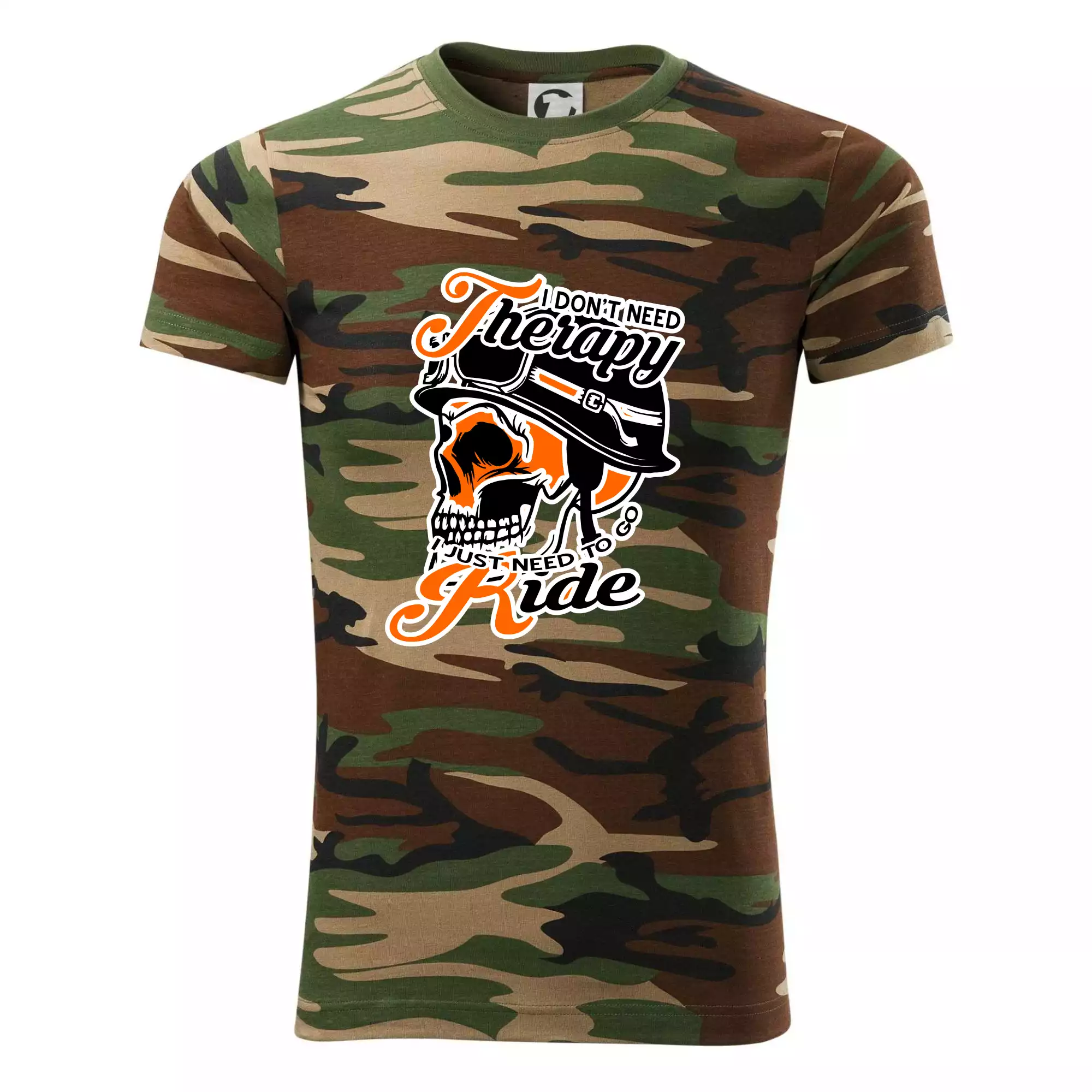 Tričko střední gramáže v barvách camouflage. Střih s bočními švy. Lem průkrčníku ze žebrového úpletu s přídavkem 5 % elastanu. Vnitřní část zadního průkrčníku začištěna páskou v barvě camouflage.