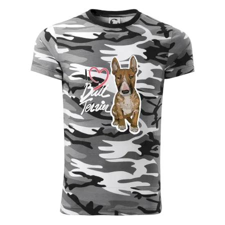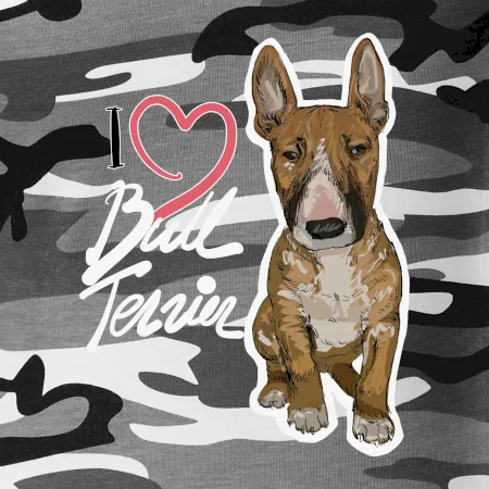 Triko pro pejskaře, na kterém je nápis "I love bull terrier" je vhodný dárek pro pejskaře, kteří mají doma právě bull teriéra. Ukaž že jsi správný pejskař a oblíkni na sebe tohle parádní triko se psem.