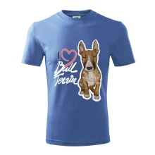 Triko pro pejskaře, na kterém je nápis "I love bull terrier" je vhodný dárek pro pejskaře, kteří mají doma právě bull teriéra. Ukaž že jsi správný pejskař a oblíkni na sebe tohle parádní triko se psem.