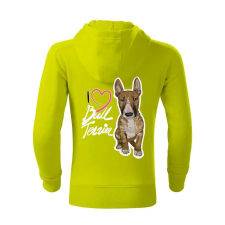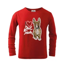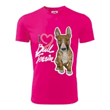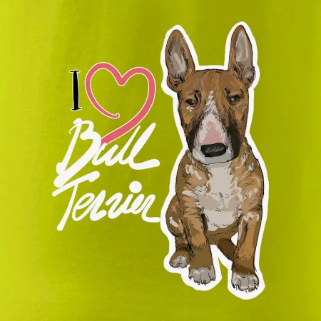 Triko pro pejskaře, na kterém je nápis "I love bull terrier" je vhodný dárek pro pejskaře, kteří mají doma právě bull teriéra. Ukaž že jsi správný pejskař a oblíkni na sebe tohle parádní triko se psem.