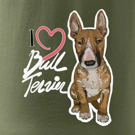 Triko pro pejskaře, na kterém je nápis "I love bull terrier" je vhodný dárek pro pejskaře, kteří mají doma právě bull teriéra. Ukaž že jsi správný pejskař a oblíkni na sebe tohle parádní triko se psem.