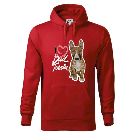 Triko pro pejskaře, na kterém je nápis "I love bull terrier" je vhodný dárek pro pejskaře, kteří mají doma právě bull teriéra. Ukaž že jsi správný pejskař a oblíkni na sebe tohle parádní triko se psem.