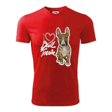 Triko pro pejskaře, na kterém je nápis "I love bull terrier" je vhodný dárek pro pejskaře, kteří mají doma právě bull teriéra. Ukaž že jsi správný pejskař a oblíkni na sebe tohle parádní triko se psem.