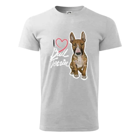 Triko pro pejskaře, na kterém je nápis "I love bull terrier" je vhodný dárek pro pejskaře, kteří mají doma právě bull teriéra. Ukaž že jsi správný pejskař a oblíkni na sebe tohle parádní triko se psem.