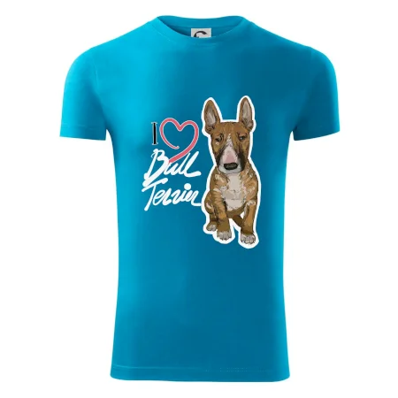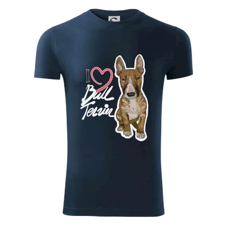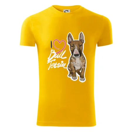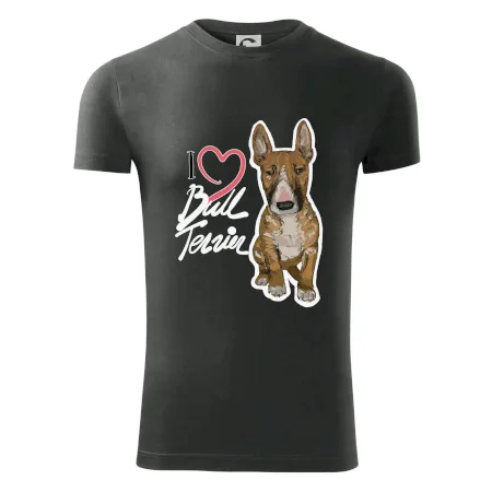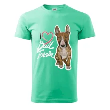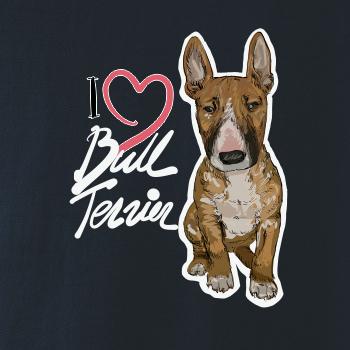 Triko pro pejskaře, na kterém je nápis "I love bull terrier" je vhodný dárek pro pejskaře, kteří mají doma právě bull teriéra. Ukaž že jsi správný pejskař a oblíkni na sebe tohle parádní triko se psem.