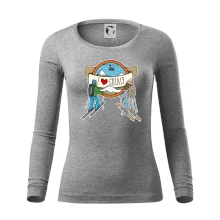 Tolerantnější vypasování dámského střihu, který je vhodný pro všechny typy postavy, ideální délka rukávů a konzervativní výstřih zakončený žebrováním, které skvěle drží tvar.