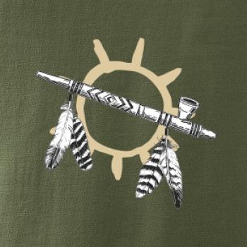 Oheň veprostřed stanu a peří za čelenkou to je to proč žijeme! Skvělé indiánské triko nebo polštář.