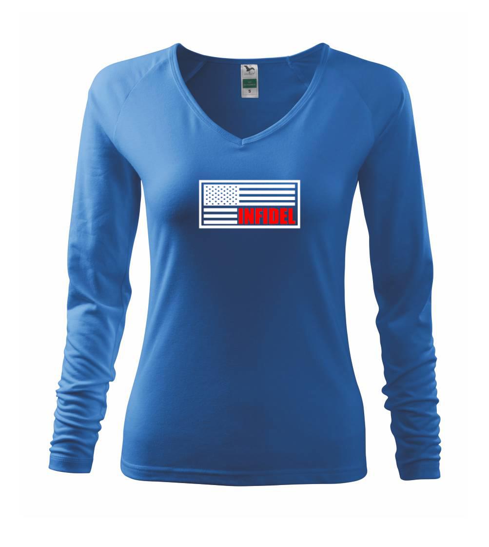 Vojenské triko, na kterém je americká vlajka s nápisem Infidel. Pokud jsi fanoušek US army, pak je pro tebe tohle triko jak dělané! Triko pro všechny, kteří mají zálibu v armádě a vojenství. Dárek pro vojáka.