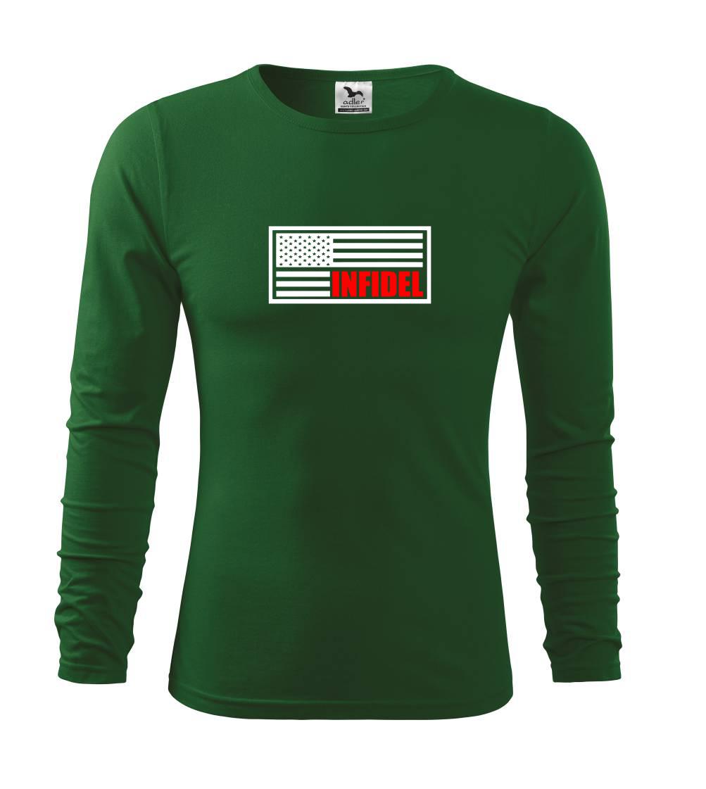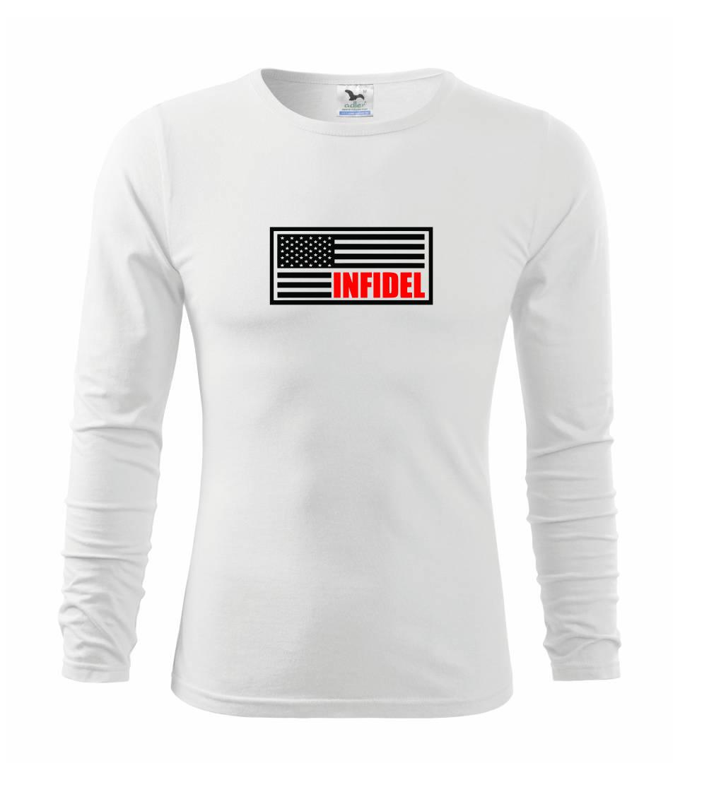 Vojenské triko, na kterém je americká vlajka s nápisem Infidel. Pokud jsi fanoušek US army, pak je pro tebe tohle triko jak dělané! Triko pro všechny, kteří mají zálibu v armádě a vojenství. Dárek pro vojáka.