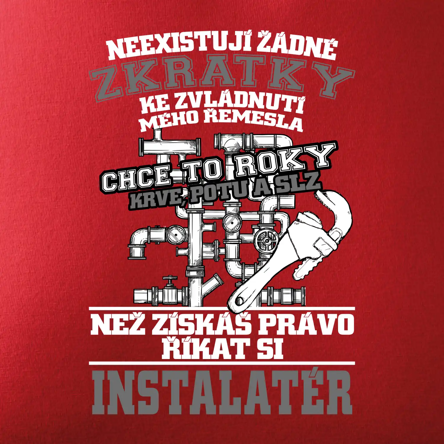 Skvělý dárek pro instalatéra, triko s instalatérským nářadím na tričku.
