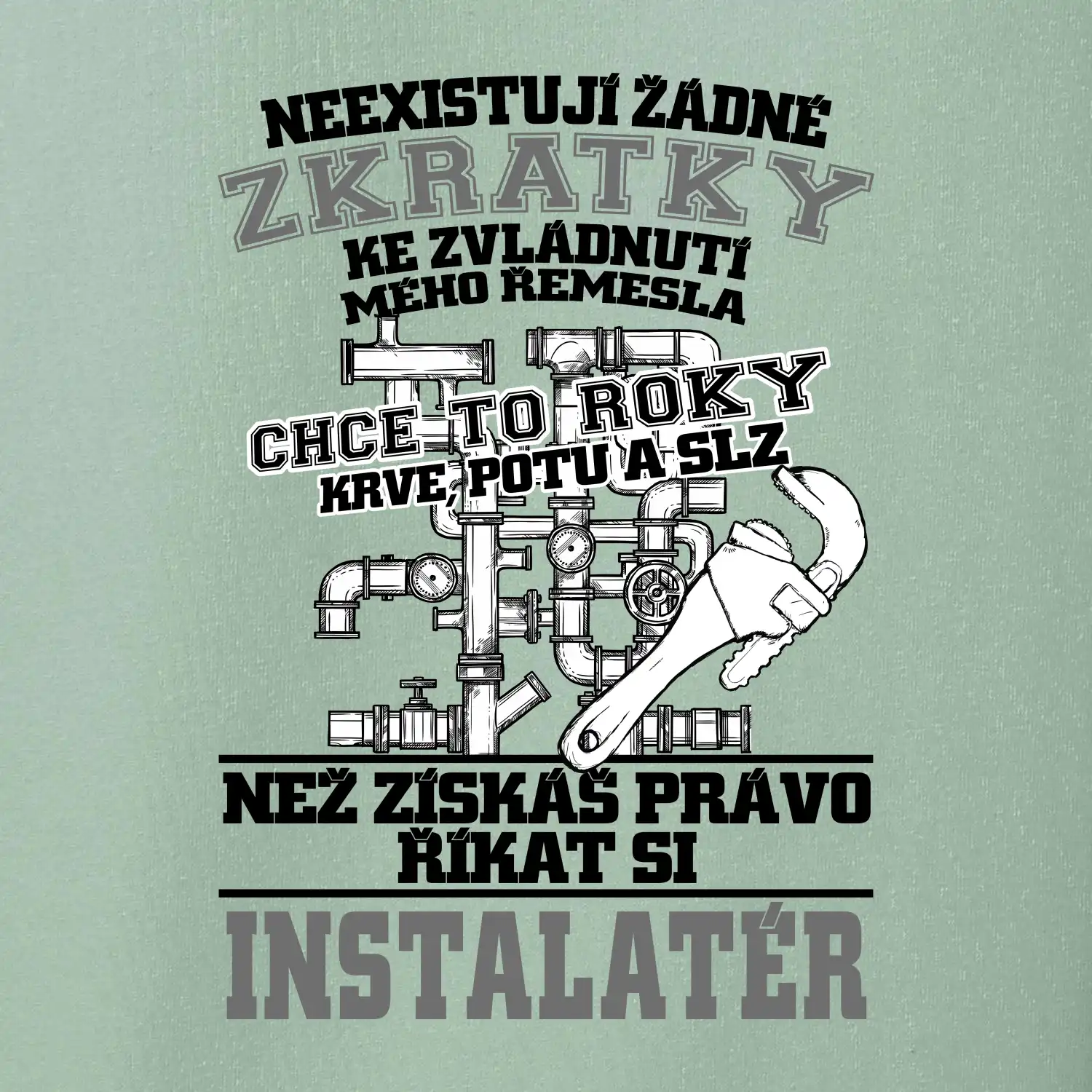 Skvělý dárek pro instalatéra, triko s instalatérským nářadím na tričku.