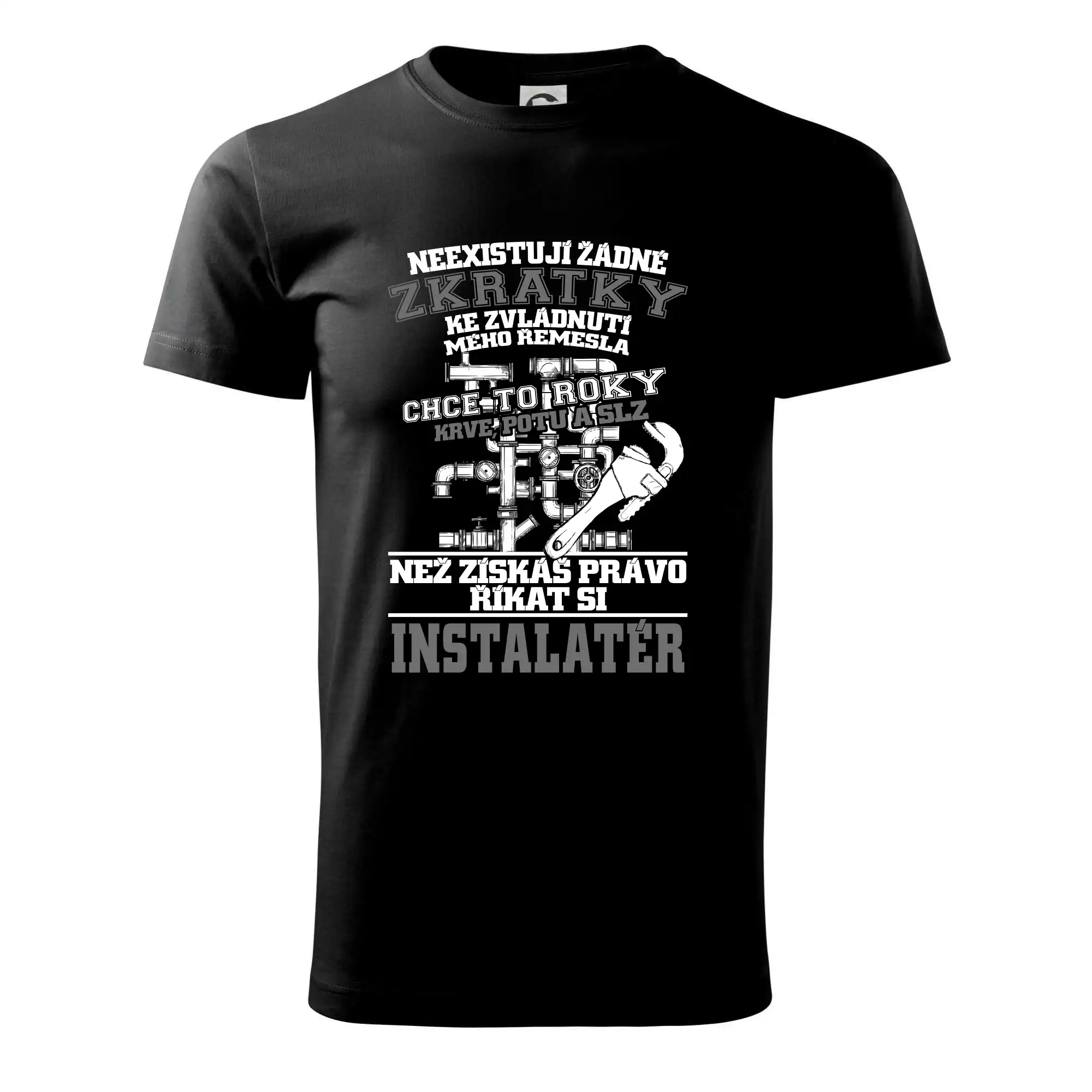 Skvělý dárek pro instalatéra, triko s instalatérským nářadím na tričku.