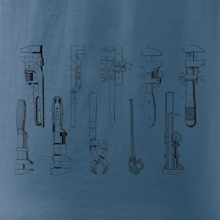 Skvělý dárek pro instalatéra, triko s instalatérským nářadím na tričku.