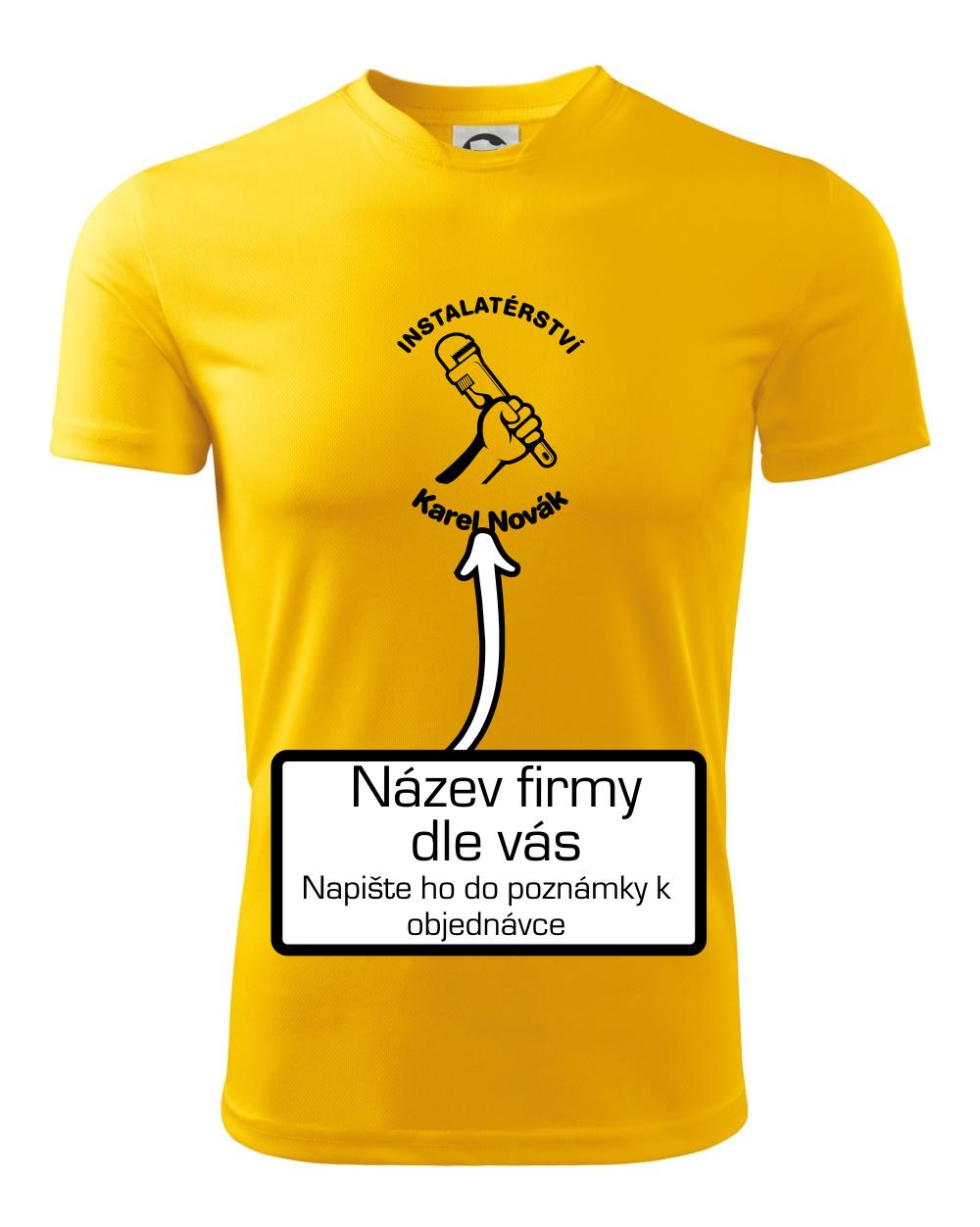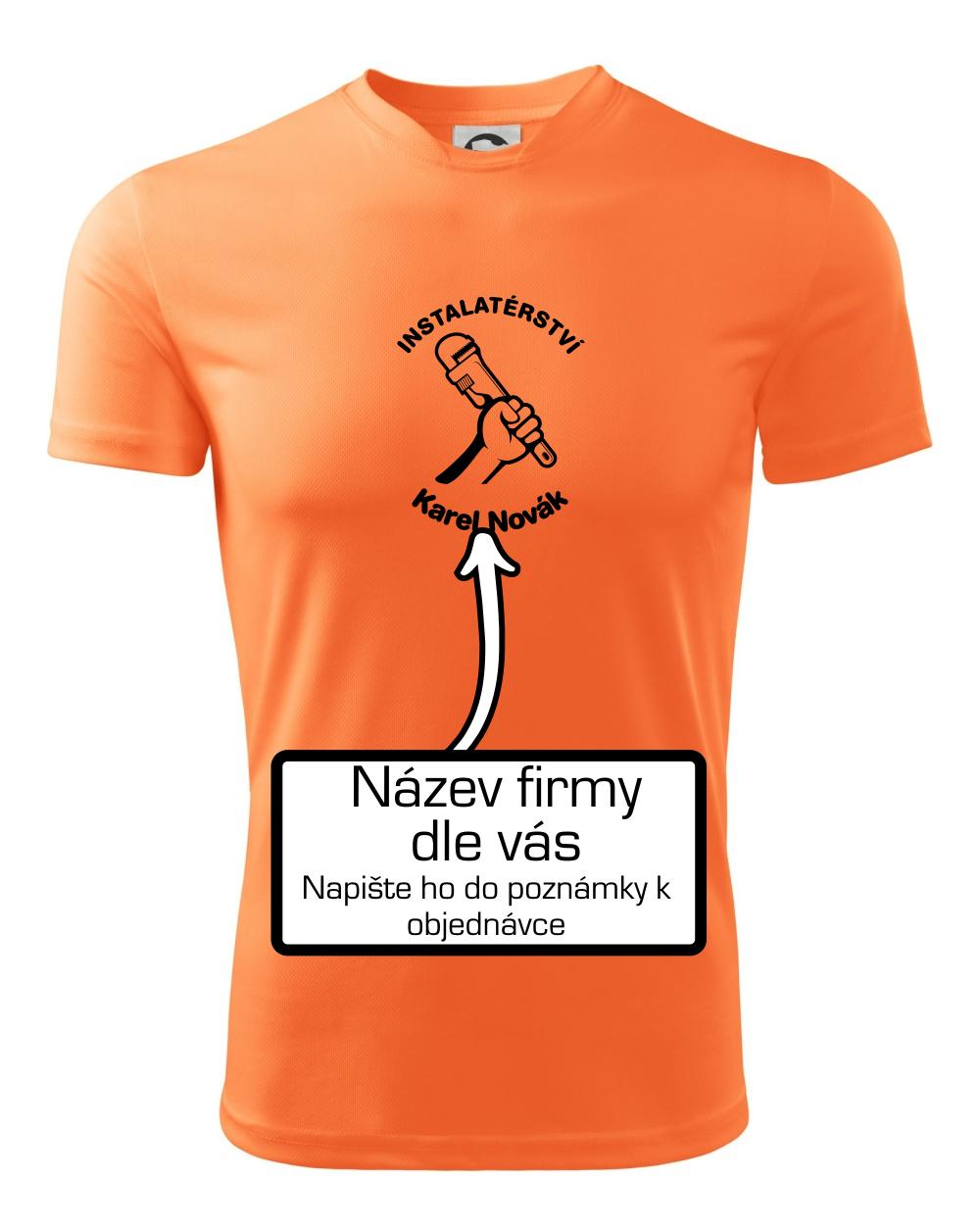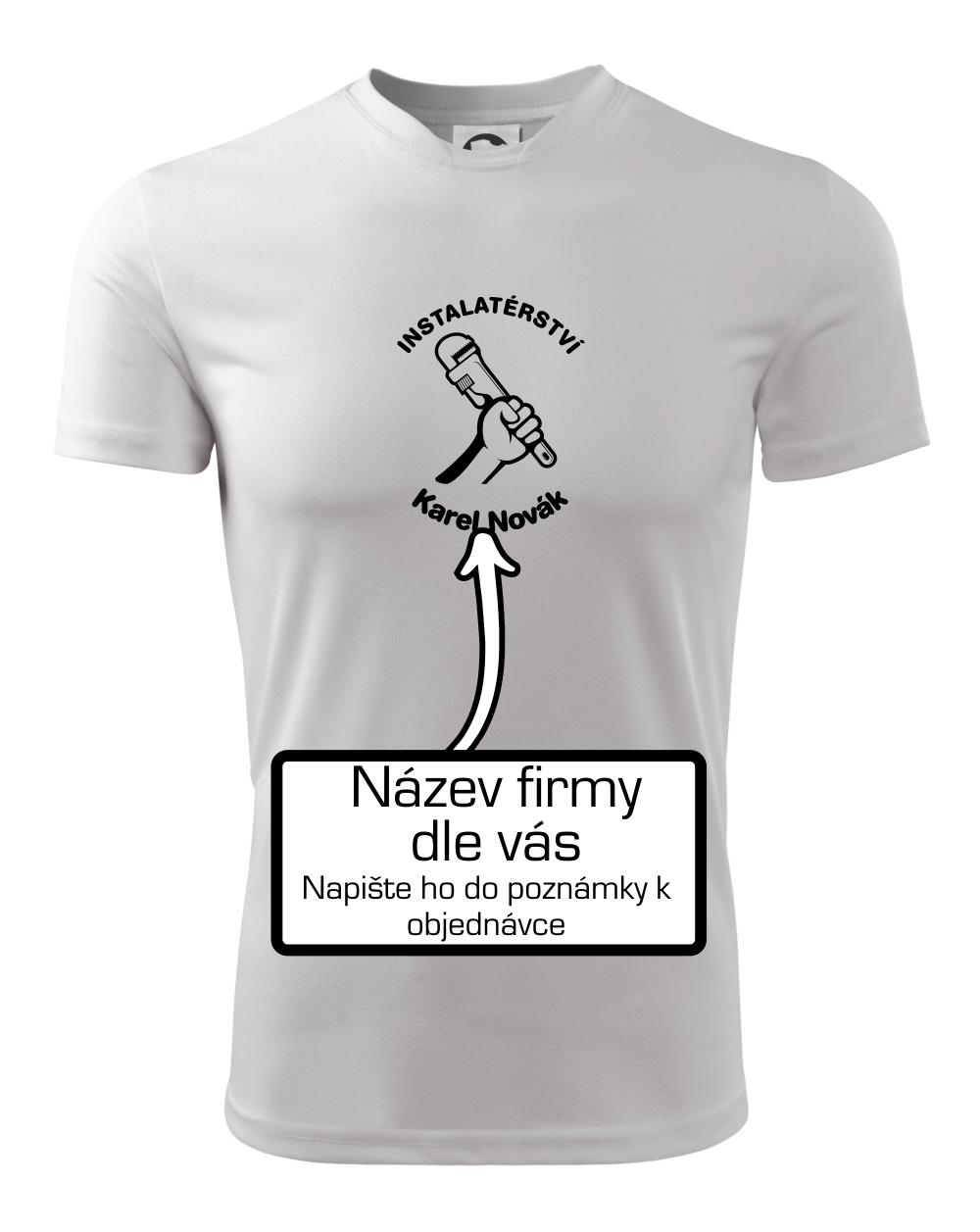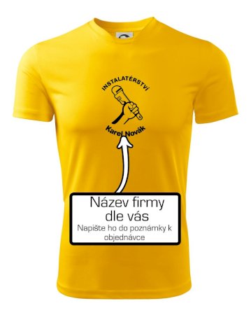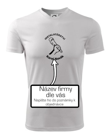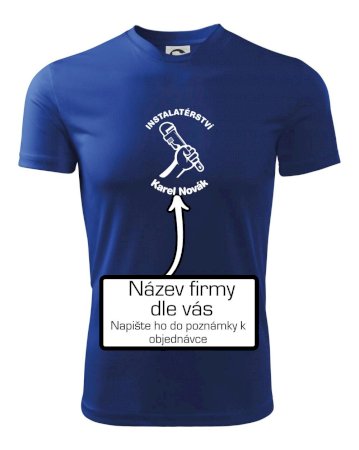 Reklamní triko pro majitele firmy nebo jeho zaměstnance instalatéry, kteří dělají instalatérské práce.