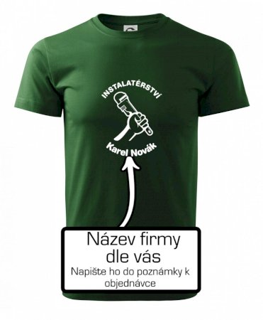 Reklamní triko pro majitele firmy nebo jeho zaměstnance instalatéry, kteří dělají instalatérské práce.