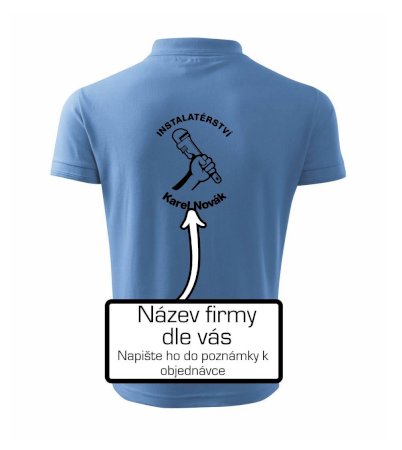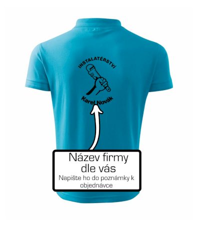 Reklamní triko pro majitele firmy nebo jeho zaměstnance instalatéry, kteří dělají instalatérské práce.