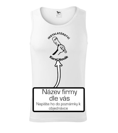 Reklamní triko pro majitele firmy nebo jeho zaměstnance instalatéry, kteří dělají instalatérské práce.