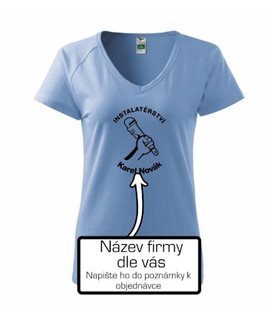Reklamní triko pro majitele firmy nebo jeho zaměstnance instalatéry, kteří dělají instalatérské práce.