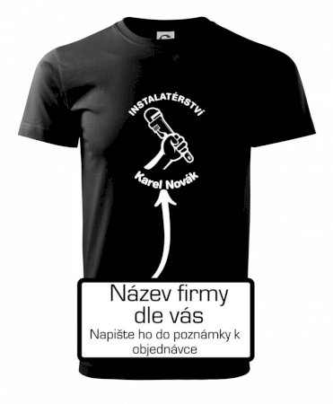 Reklamní triko pro majitele firmy nebo jeho zaměstnance instalatéry, kteří dělají instalatérské práce.