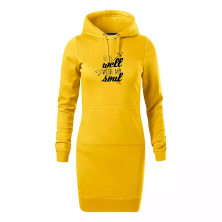 Dámské mikinové šaty MALFINI Snap 419 jsou ideální volbou pro ženy, které hledají pohodlný a stylový kousek pro volný čas nebo každodenní nošení. Lehce vypasovaný střih s bočními švy podtrhuje ženskou siluetu, zatímco kapuce s podšívkou a stahovací šňůrkou dodává ležérní vzhled.