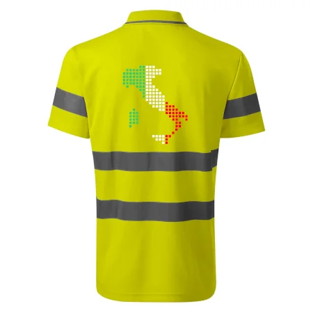Reflexní polokošile MALFINI HV Runway 2V9 zajišťuje vysokou viditelnost díky fluorescenčnímu polyesteru a certifikovaným retroreflexním pruhům 3M. Pohodlná díky vnitřní bavlněné vrstvě, s bočními švy, žebrovaným límečkem s kontrastním pruhem a légou se třemi knoflíky. Splňuje normy EN ISO 20471 (třída 2) a EN ISO 13688, ideální pro práci i volný čas. Dostupná v reflexní žluté a oranžové, velikosti S-3XL.