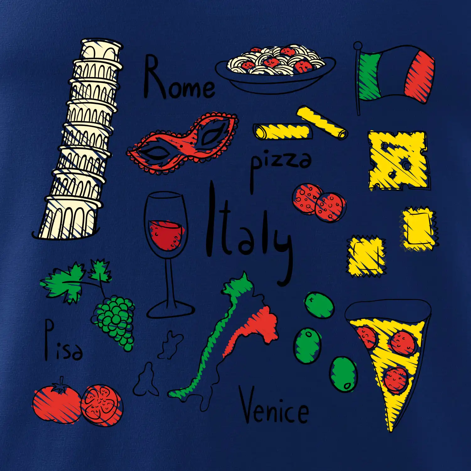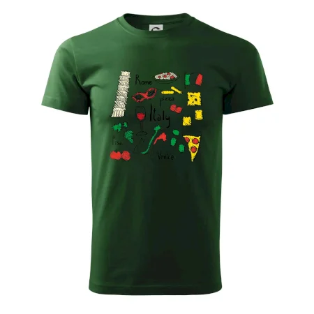 Trička pro milovníky Itálie. Vyber si motiv s typickými symboly těstovinové země.Triko na cestu do Říma ve kterém budeš objevovat nejlepší místa v Římě, bazilika sv. Petra, Andělský hrad a nesmíš zapomneout na Koloseum!
