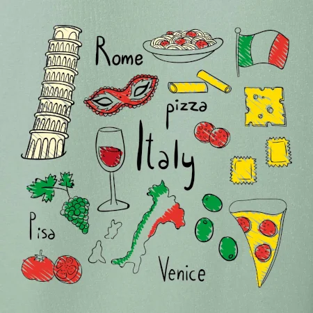 Trička pro milovníky Itálie. Vyber si motiv s typickými symboly těstovinové země.Triko na cestu do Říma ve kterém budeš objevovat nejlepší místa v Římě, bazilika sv. Petra, Andělský hrad a nesmíš zapomneout na Koloseum!