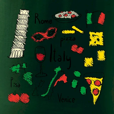 Trička pro milovníky Itálie. Vyber si motiv s typickými symboly těstovinové země.Triko na cestu do Říma ve kterém budeš objevovat nejlepší místa v Římě, bazilika sv. Petra, Andělský hrad a nesmíš zapomneout na Koloseum!