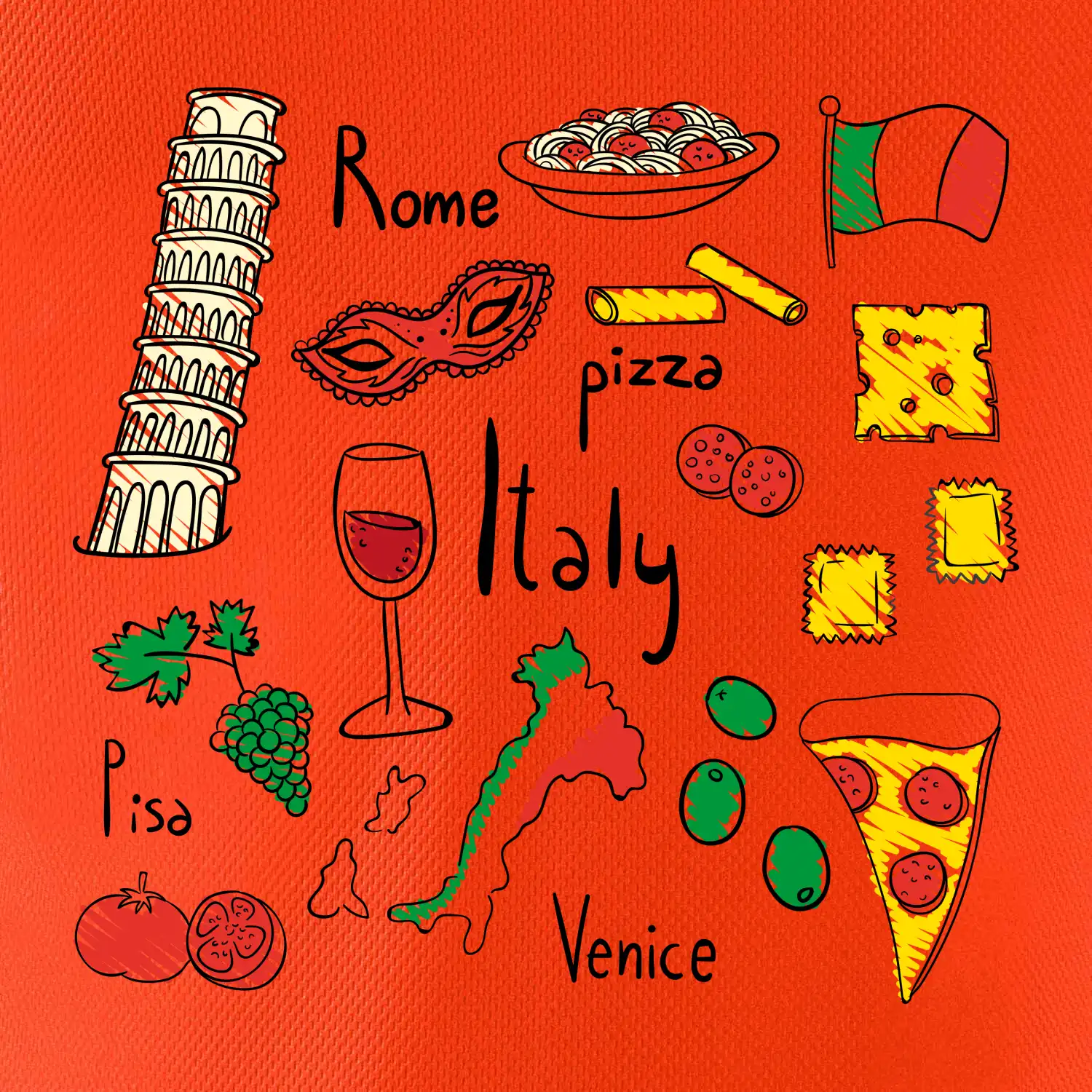 Trička pro milovníky Itálie. Vyber si motiv s typickými symboly těstovinové země.Triko na cestu do Říma ve kterém budeš objevovat nejlepší místa v Římě, bazilika sv. Petra, Andělský hrad a nesmíš zapomneout na Koloseum!