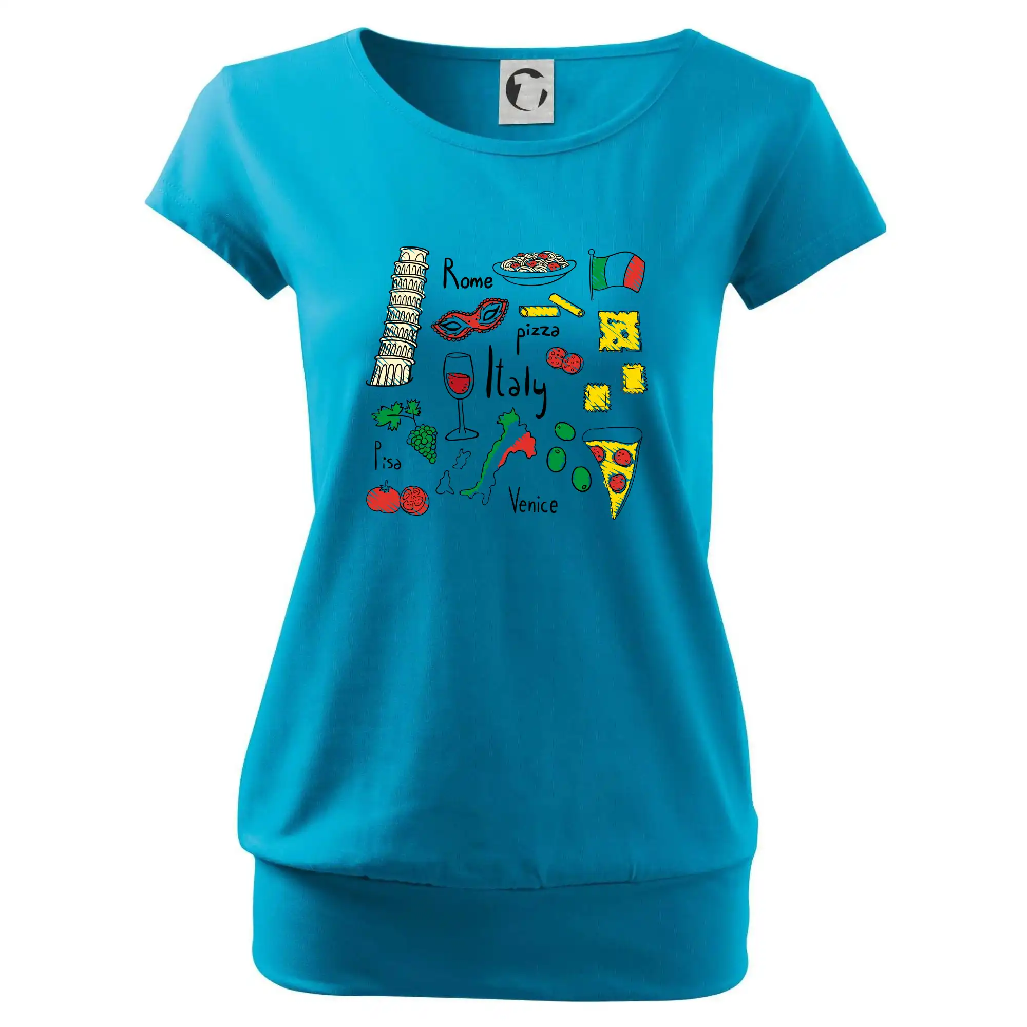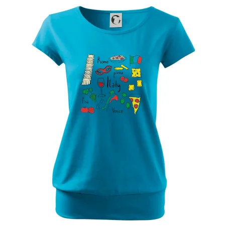 Trička pro milovníky Itálie. Vyber si motiv s typickými symboly těstovinové země.Triko na cestu do Říma ve kterém budeš objevovat nejlepší místa v Římě, bazilika sv. Petra, Andělský hrad a nesmíš zapomneout na Koloseum!