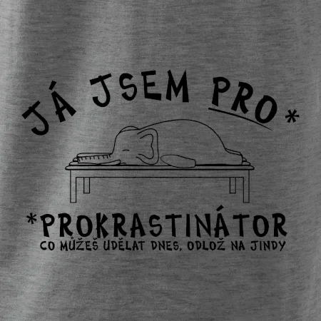 Triko pro studenty s motem "Co můžeš udělat dnes, odlož na jindy." Studentské triko prokrastinátor pro studenta, který se nechce učit. Jsi student a radši by sis užíval jako tenhle slon?