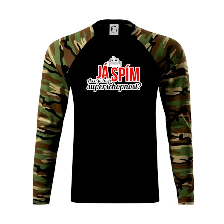Já spím - tvoje superschopnost? rovný nápis - Camouflage LS