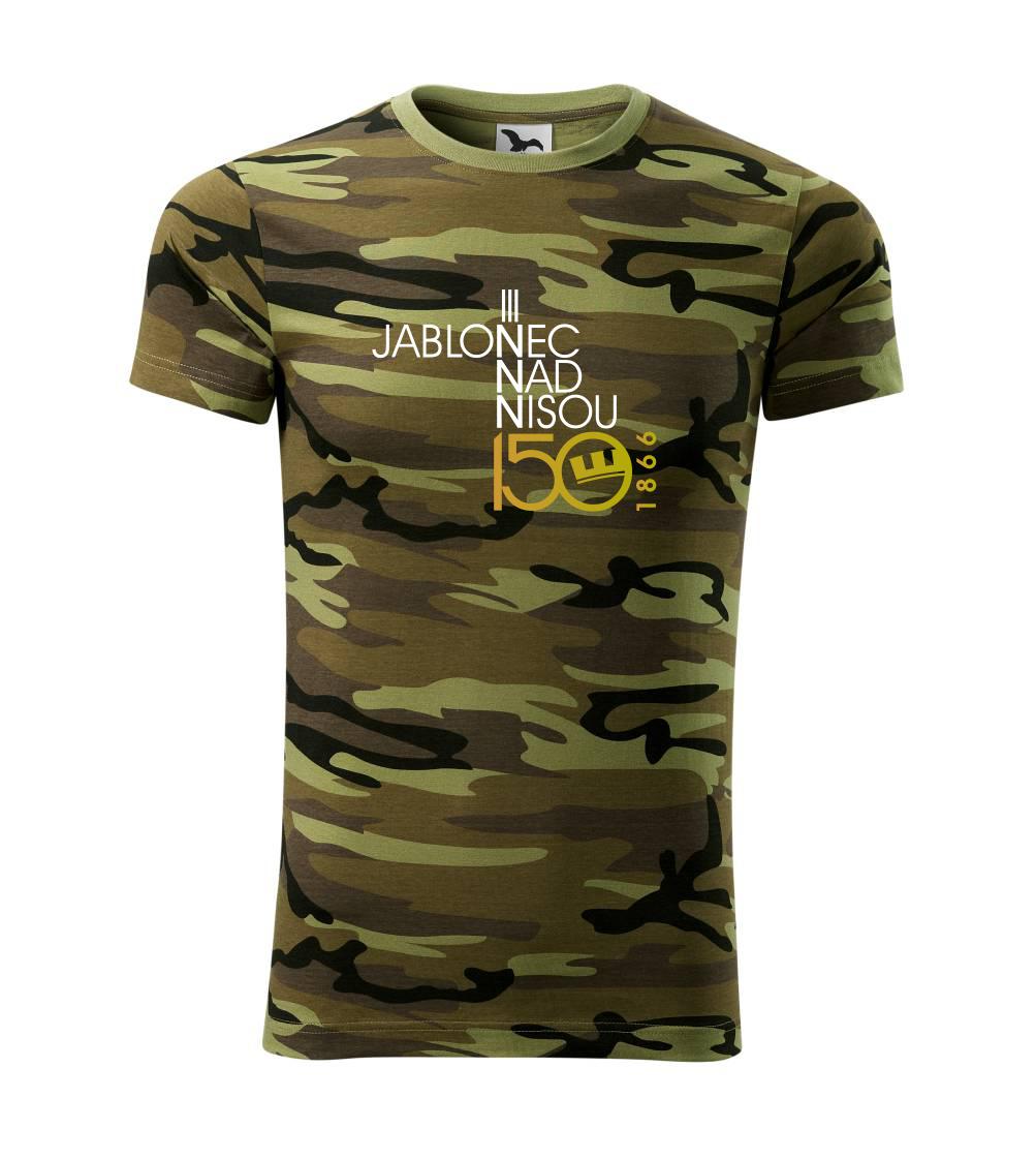 Tričko střední gramáže v barvách camouflage. Střih s bočními švy. Lem průkrčníku ze žebrového úpletu s přídavkem 5 % elastanu. Vnitřní část zadního průkrčníku začištěna páskou v barvě camouflage.