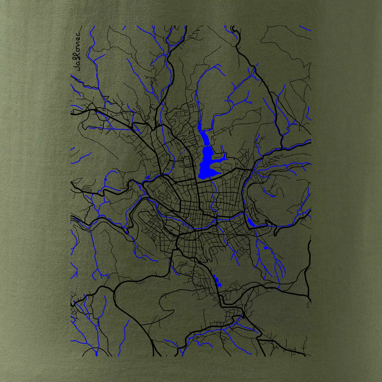 Jablonec nad Nisou - Mapa s vodními toky